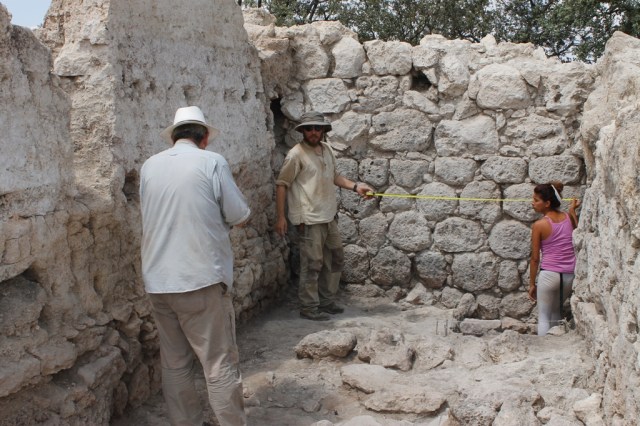 En este contexto comenzamos a excavar el Cerro de la Merced, que parecía uno más de estos recintos. La sorpresa ha sido que lo que ha salido obliga a leer las cosas de otra manera. Después de cuatro años de excavaciones, a media de un mes y medio cada año, ha resultado ser un yacimiento culturalmente ibérico. Apenas hay materiales romanos. Arquitectónicamente la técnica de trabajo es ibérica, pero todo ello se fecha, década arriba década abajo, en torno al año 100 a.C. Es un recinto fortificado que ha resultado ser mucho más grande, más complejo, que una mera atalaya o recinto pequeño de vigilancia, porque tiene dos grandes perímetros fortificados, y una escalinata monumental en piedra que comunica el recinto inferior con el superior. El muro del recinto interior y principal tiene cuatro metros de espesor, con alzado de 2 metros en algunos puntos, de tipo ciclópeo, y una estructura interna con habitaciones, dos plantas, un total de diez habitaciones diferentes, hecho con una gran regularidad… Es decir, un recinto doble, con una escalinata de comunicación entre los dos, muros ciclópeos, enlosados de piedra en las habitaciones con lajas de hasta un metro, no es una atalaya, ni una granja, ni un cortijo. Tampoco es exclusivamente militar, porque hemos encontrado molinos, almacenes, pesas de telar (fusayolas), es decir, evidencias de actividad textil, también armas. Es la fase siguiente a la destrucción del cercano Cerro de la Cruz (Almedinilla), destruido violentamente hacia el 141 a.C.