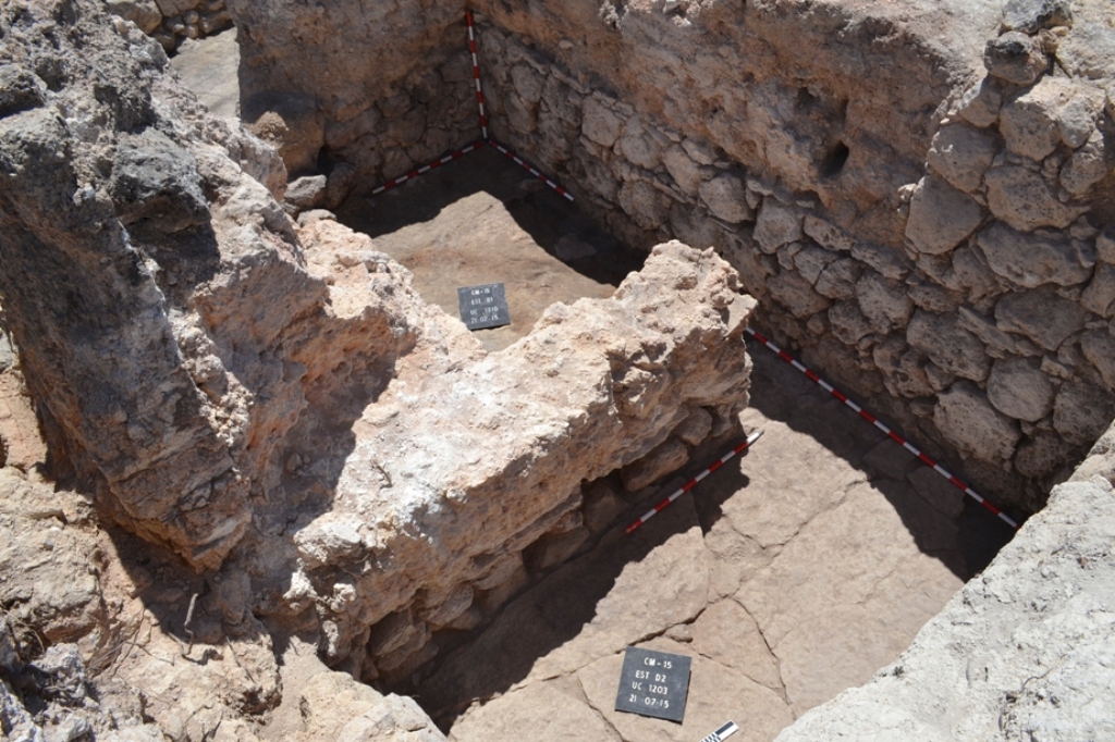 En este contexto comenzamos a excavar el Cerro de la Merced, que parecía uno más de estos recintos. La sorpresa ha sido que lo que ha salido obliga a leer las cosas de otra manera. Después de cuatro años de excavaciones, a media de un mes y medio cada año, ha resultado ser un yacimiento culturalmente ibérico. Apenas hay materiales romanos. Arquitectónicamente la técnica de trabajo es ibérica, pero todo ello se fecha, década arriba década abajo, en torno al año 100 a.C. Es un recinto fortificado que ha resultado ser mucho más grande, más complejo, que una mera atalaya o recinto pequeño de vigilancia, porque tiene dos grandes perímetros fortificados, y una escalinata monumental en piedra que comunica el recinto inferior con el superior. El muro del recinto interior y principal tiene cuatro metros de espesor, con alzado de 2 metros en algunos puntos, de tipo ciclópeo, y una estructura interna con habitaciones, dos plantas, un total de diez habitaciones diferentes, hecho con una gran regularidad… Es decir, un recinto doble, con una escalinata de comunicación entre los dos, muros ciclópeos, enlosados de piedra en las habitaciones con lajas de hasta un metro, no es una atalaya, ni una granja, ni un cortijo. Tampoco es exclusivamente militar, porque hemos encontrado molinos, almacenes, pesas de telar (fusayolas), es decir, evidencias de actividad textil, también armas. Es la fase siguiente a la destrucción del cercano Cerro de la Cruz (Almedinilla), destruido violentamente hacia el 141 a.C.