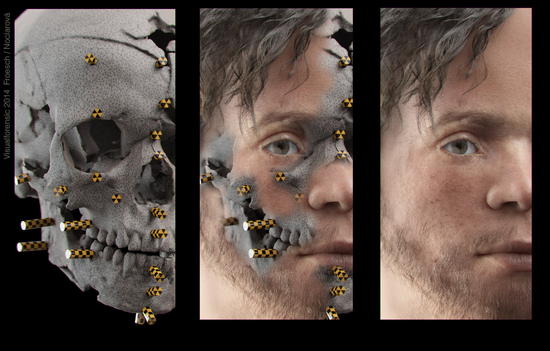 Secuencia de la reconstrucción facial de uno de los cráneos. Foto: Visualforensic |