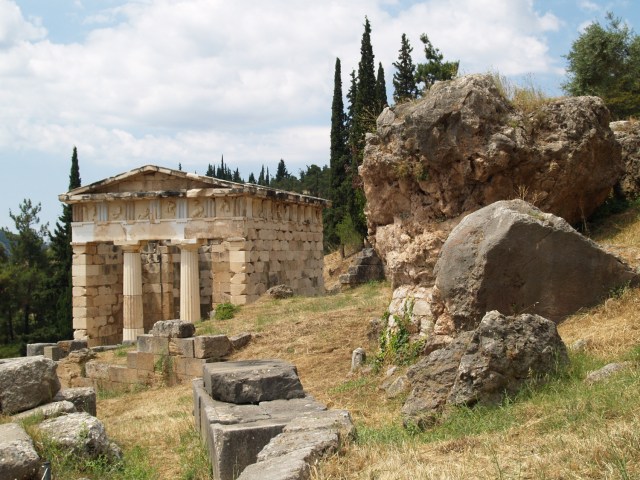 | Tesoro de los atenienses con la roca de la Sibila en primer término. Foto: Mario Agudo Villanueva |